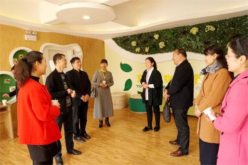 颜明辉一行首先考察了育才幼儿园本部。该园地处鼓楼老街,生源充足,但是占地面积有限,幼儿园充分利用院落、平台、走廊为幼儿创设游戏活动环境,体现了老师的别具匠心。接着,一行人来到了南京路安置区育才分园,在那里,展现在面前的是一所设备先进、色彩柔和的现代化幼儿园,园内生活馆、美工室、科学探索室、教研室等各类功能室一应俱全,处处彰显园所管理者的用心、细心。颜明辉一行认真聆听用园长郭玲的介绍,不时对幼儿园管理、投入、配备、师资以及运行情况进行询问。交流中颜明辉对育才幼儿园精致的环境创设和老师们的敬业精神给予了高度评价。
