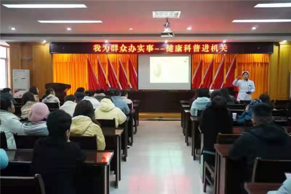 3月19日上午,为提升单位职工健康意识,颍东区卫健委组织开展“我为群众办实事”健康科普进机关知识讲座活动,区妇女联合会、区总工会、区文明办等单位共60余人参加。