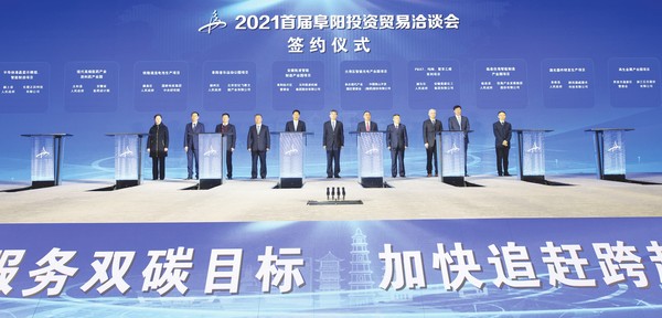 12月18日上午,以“服务双碳目标加快追赶跨越”为主题的2021首届阜阳投资贸易洽谈会开幕,国内知名企业家、院士专家代表及阜阳市毗邻县市区党政代表相聚阜城,共商合作、共谋发展。