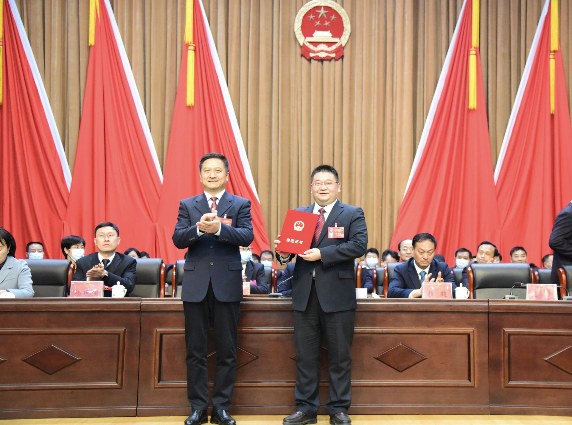 会上,张俊杰代表主席团向新当选的颍东区第六届人大常委会主任、副主任颁发当选证书;王建为新当选的颍东区人民政府区长、副区长、区监察委员会主任、区人民法院院长、区人民检察院检察长颁发当选证书。