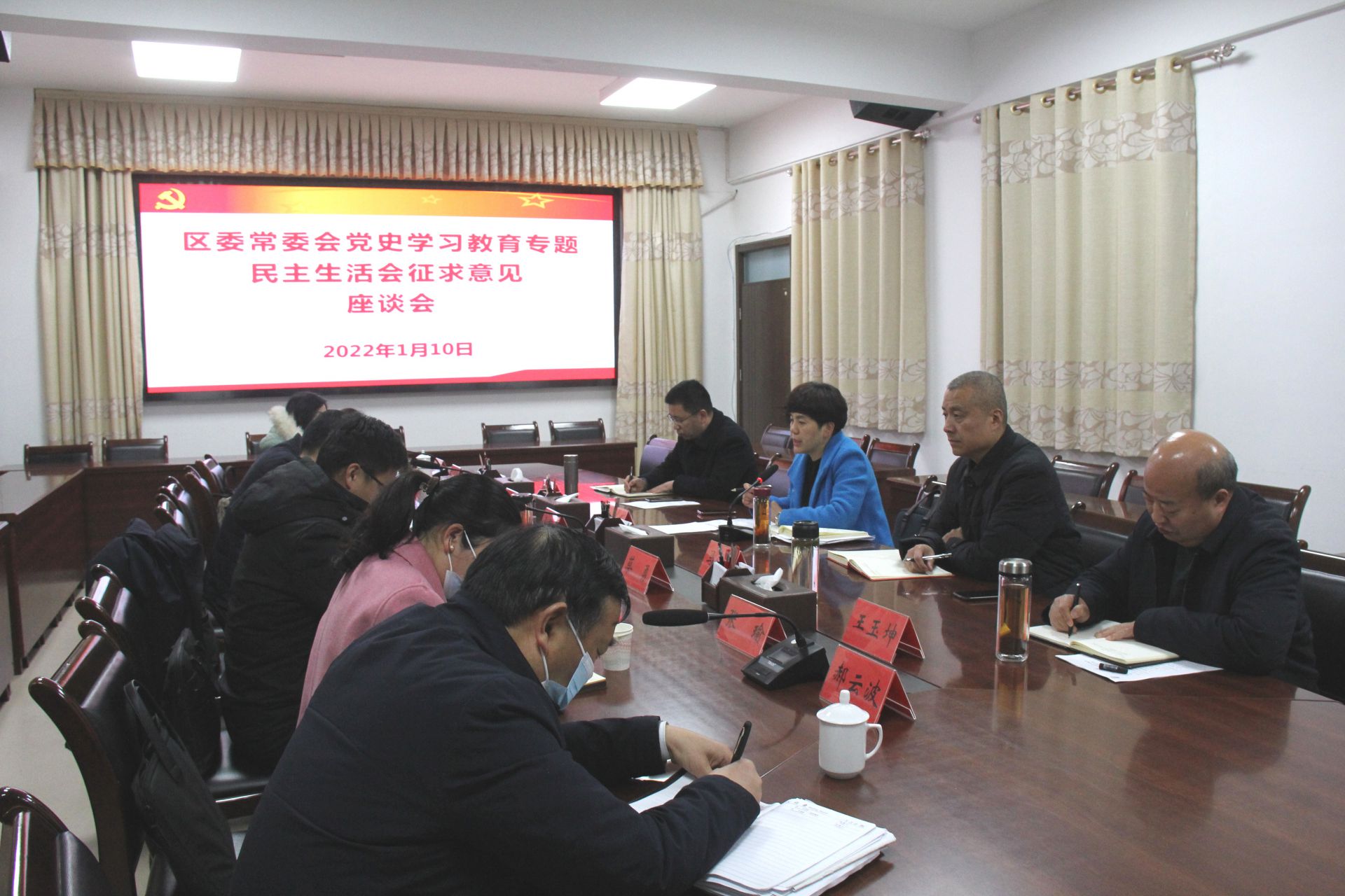 1月10日,颍东区委常委会党史学习教育专题民主生活会征求意见座谈会召开,面对面征求基层党员干部和群众代表的意见建议,确保开出高质量专题民主生活会。市委常委、统战部长、区委书记张俊杰主持会议并讲话。