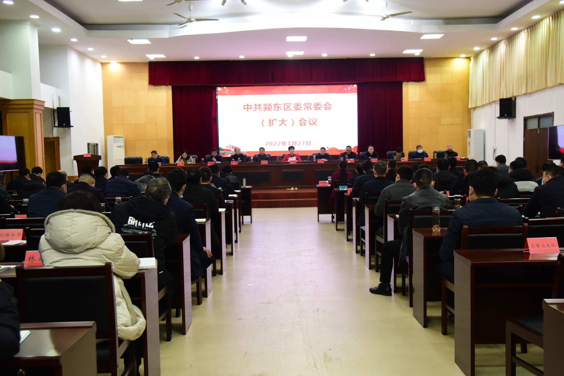 1月27日,颍东区召开区委常委会(扩大)会议。市委常委、统战部部长、区委书记张俊杰出席会议并讲话,区委副书记、区长刘健主持会议。