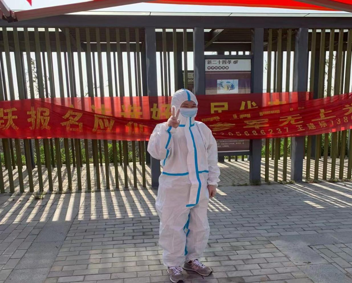 我这一组负责信息登记,特别感谢组织给大家配齐防护设备,这是人生第一次接触防护衣,也是第一次当“大白”。负责宣传的同事给我拍了张工作照,我很感动!工作与生活一样,从来不少动心瞬间!