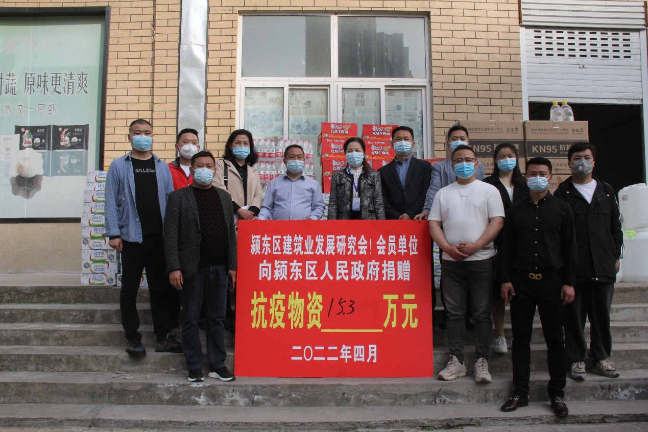4月7日,颍东区建筑业发展研究会的22家会员企业,向颍东区定向捐赠抗疫物资15.3万元,包括5万个医用防护口罩、500斤酒精和2800件食品。