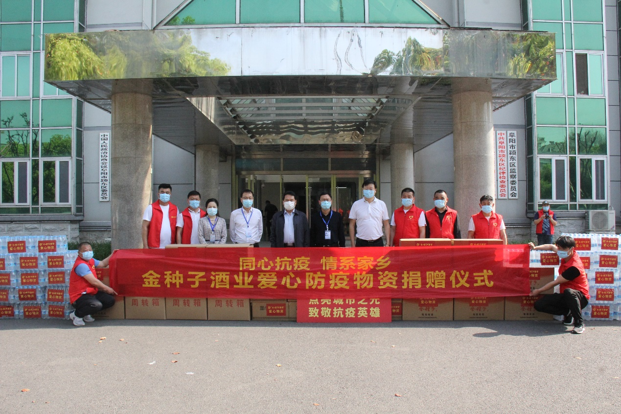 4月11日,金种子集团为颍东区疫情防控指挥部捐赠医用口罩1万只、消毒酒精600斤、消毒湿巾480包、纯净水2400瓶;后续还将计划为颍东区17个社区捐赠防疫物资礼包约5000份、各街道提供1吨消毒酒精和450箱纯净水等防疫物资。