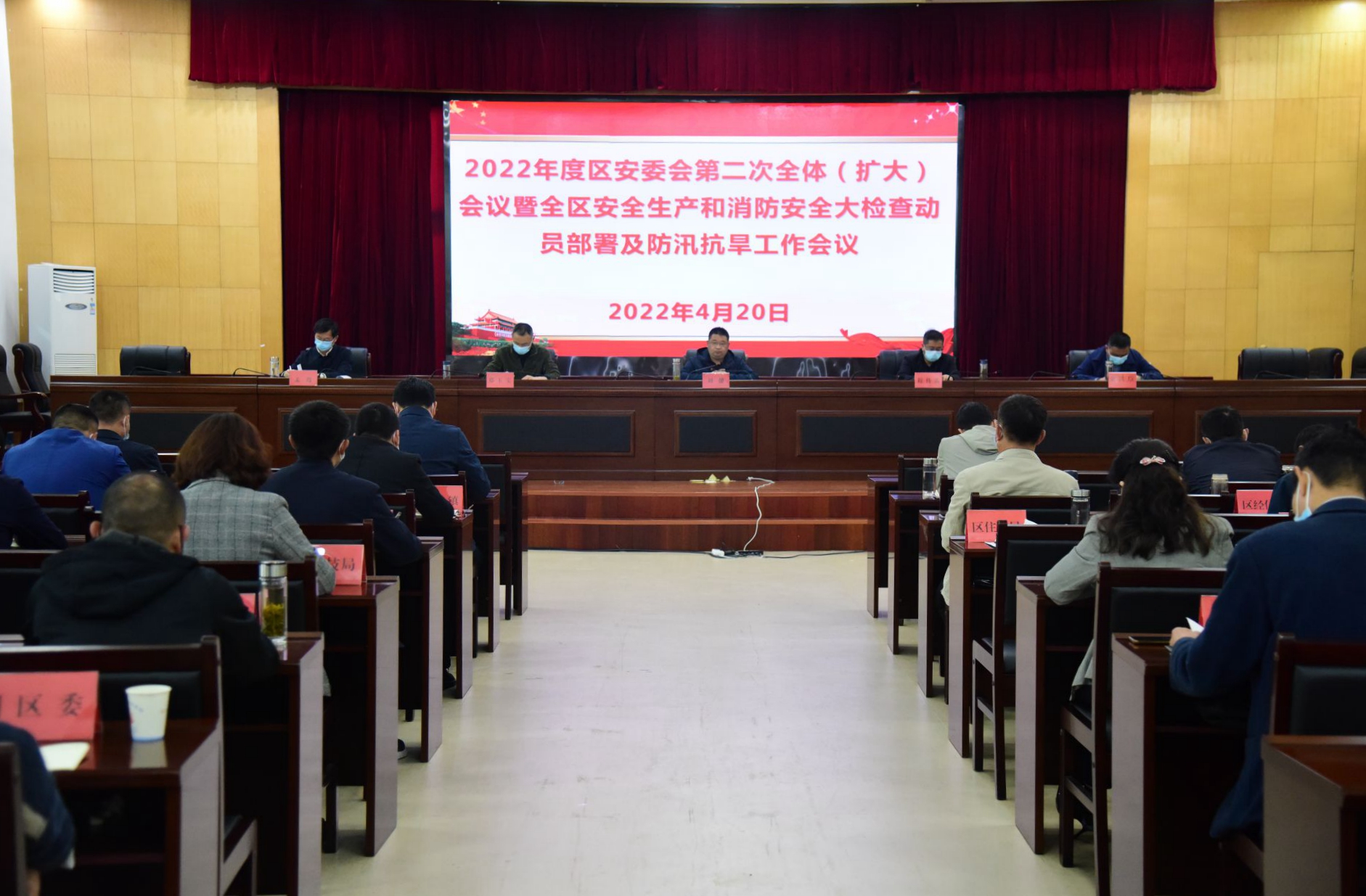 4月20日上午,区委副书记、区长刘健主持召开区安委会第二次全体(扩大)会议暨全区安全生产和消防安全大检查动员部署及防汛抗旱工作会议。区领导程传雷、郑玉宝、金洪臣、孟骞,区直相关单位主要负责同志、各乡镇街道行政主要负责同志、有关重点企业主要负责同志参加会议。