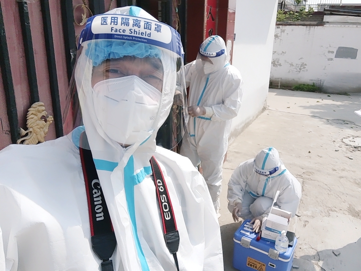 作为一名资深通讯员,吴世杰在做好驻村工作队本职工作的同时,也在积极宣传基层一线抗疫的暖心事。他和正午镇负责宣传的干部吴佳妮走遍全镇9个村居,拍摄了大量一线抗疫的感人事迹的素材,为了获得更全面的信息,吴世杰身穿厚厚的防护服,携带笨重的单反相机冒高温深入正午镇横山村张小庄封控区进行采访,留下了珍贵的第一手影像资料。