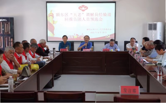 8月29日上午,阜阳市颍东区召开“五老”调解员经验巡回报告团人员预选会,提高基层“五老”调解员调解水平和技巧。