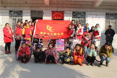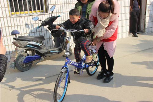 1月24日,“点亮微心愿”活动在颍东区团委工作人员和阜阳义工联合会义工一行来到老庙镇将自行车、复读机、棉衣、书籍等用品发放到孩子们手中,鼓励他们克服困难、努力学习,用优异的学习成绩回报社会。