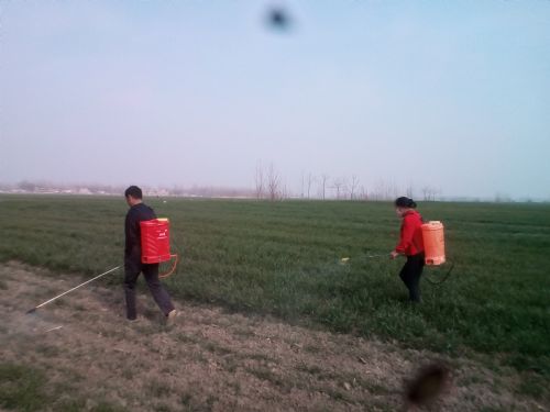 连日来,枣庄镇积极动员广大群众,紧紧抓住当前天气晴好,突击对全镇6.5万亩小麦进行病虫草害防治,为夺取全镇今年午季小麦高产增收夯实了基础。图为2月15日枣庄镇大桥村村民张斌夫妇在为自己家小麦进行田间喷施农药。