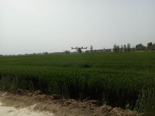 现场观摩了大型自走式植保药械和航空植保飞机开展小麦中后期病虫害“一喷三防”统防统治作业。通过农机农艺相结合,大大提高了大型药械的作业速度和质量,减少辗轧现象的发生;用航空植保飞机进行小麦中后期病虫害防治,作业速度快,喷雾均匀。并对马楼村、庙南居的4000余亩小麦示范田进行了小麦病虫害统防统治。