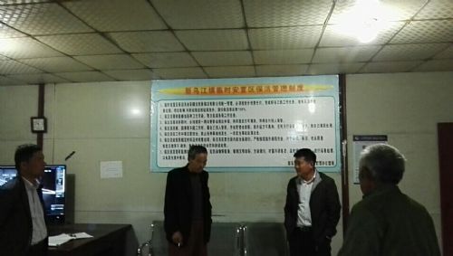 4月23日晚上9点,新乌江镇镇长史志、党委副书记朱明友、副镇长王子伟来到临时安置区,对安全保卫工作进行突击查看。