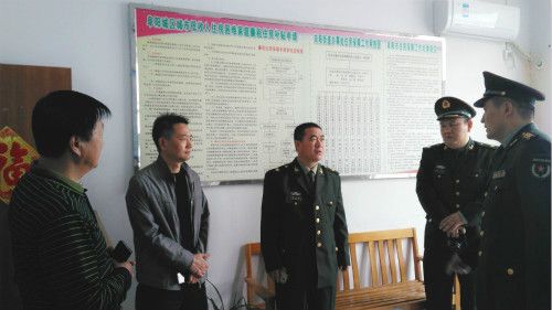 4月26日上午,区人武部政委程永湖、区双拥办主任徐红卫一行,到向阳街道检查双拥工作,街道党工委副书记、办事处主任、双拥工作领导小组组长于飞,街道党工委委员、武装部长、双拥办副主任李占海等陪同。