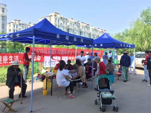 5月12日上午,为纪念“5.12国际护士节”,弘扬南丁格尔救死扶伤、勇于奉献的人道主义精神,展示护士良好的职业形象,提高百姓的疾病防护和保健意识,阜阳市第四人民医院走进幸福东路社区开展大型义诊活动。