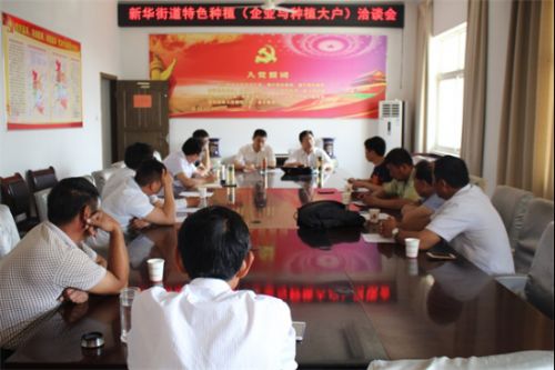 为加速新华街道农业结构转型升级步伐,5月26日上午,新华街道办事处召开特色种植(企业和种粮大户)洽谈会。街道党工委副书记、办事处主任徐鑫主持会议,颍东区蔬菜办主任胡宝玉到会指导。
