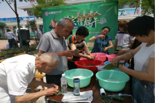 活动同时,其他的爱心志愿者有的为老人理发,有的陪老人聊天,还有的忙着包粽子。历时一上午的时间,大家包了一大盆粽子,并及时煮好后亲手送到老人身边。吃着甜甜的粽子和香喷喷的鸡蛋,老人们都笑得合不拢嘴。