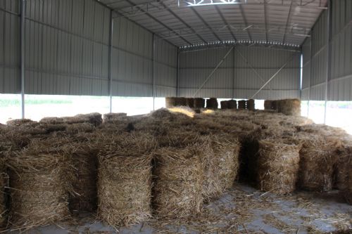 5月31日,在梧樟村一片金黄的小麦田里,小麦秸秆打捆机正在进行作业,田野里机声轰鸣,随着秸秆打捆机前行,身后“吐”出的麦秆变成一捆捆用绳索打捆成的长方形秸秆块状物,然后装车运往梧樟村养牛场作为饲料。