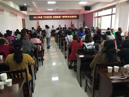 9月4日下午,向阳街道办事处东平社区召开了2017年度“生育关怀.幸福家庭”助学奖金发放仪式。阜阳市卫计委调研员李皖跃、计生协会秘书长赵中龄,颍东区政府副区长沙学珍出席仪式,区卫计委主任李景波主持发放仪式。