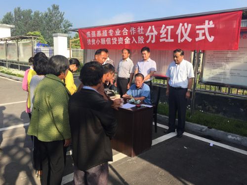 仪式上,盛强养殖专业合作社负责人周敏修为20户贫困户发放了小额信贷入股分红3500元,共计70000元.看着手上沉甸甸的分红款,贫困户们喜悦的心情溢于言表。吴寨村贫困户马振其说:“今天我很高兴来参加小额信贷入股发放仪式,在政府的支持和帮扶下,我会结合自身条件争取早日脱贫。”