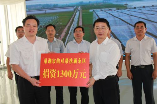 顾恒中代表颍东区委、区政府对巢湖市的帮扶工作表示感谢。他说,巢湖市高度重视结对帮扶工作,制定了结对帮扶实施方案,明确了帮扶重点,今年起至2020年,每年安排财政预算不少于1000万元,用于支持颍东区脱贫攻坚工作。颍东区有信心、有决心,在巢湖市的大力帮助下,如期实现脱贫攻坚目标任务。