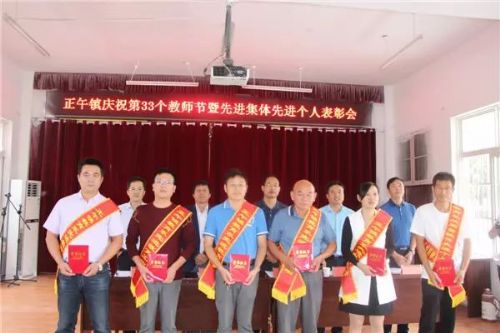 9月9日,正午镇召开庆祝第33个教师节暨教育系统先进单位、先进个人表彰大会,镇领导班子全体成员、各村(居)党总支书记、受表彰教师以及部分教职工代表参加表彰大会。颍东区教育局党组成员吴景福到会指导。