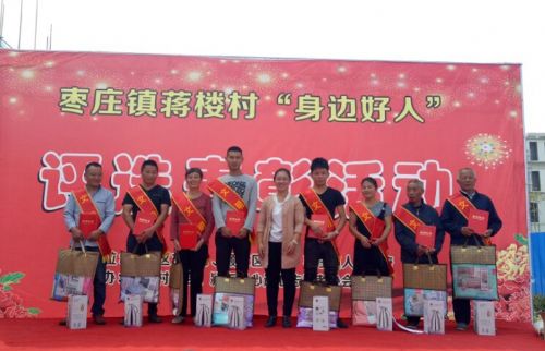 为弘扬身边好人的感人事迹、大力倡导社会新风尚,广泛动员干部群众参与和实践社会公德、职业道德、家庭美德等道德提升活动。9月22日,枣庄镇蒋楼村举行身边好人评选表彰活动。区委宣传部副部长、文明办主任来东方,区妇联副主席黄金铃,镇分管负责人徐晴晴、镇妇联主席马丽娜,蒋楼村14名好人候选人及50余位村民代表参加评选活动。