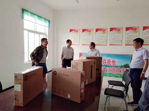 最后,调研组向兰楼村委会捐赠了两台电脑,助力兰楼村脱贫工作。