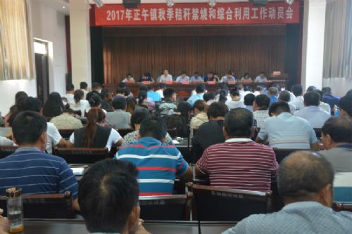 9月23日上午,正午镇召开2017年秋季秸秆禁烧和综合利用动员会,部署安排本镇秋季秸秆禁烧工作。会议由镇党委书记主持召开,全体镇干部和工作人员、各村(居)两委成员、农机手及种粮大户代表,共计200余人参加了此次会议。