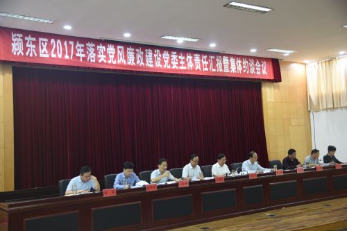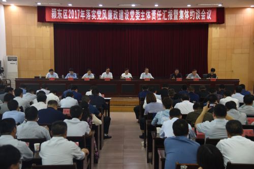 9月29日,颍东区召开2017年落实党风廉政建设党委主体责任汇报暨集体约谈会议,区委书记顾恒中出席会议并讲话,区委副书记刘雷振主持会议。