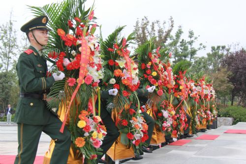 上午9时,在庄严肃穆的气氛中,公祭活动正式开始。礼兵就位,现场奏唱中华人民共和国国歌;国歌唱毕,全场肃立,向为中国人民解放事业和共和国建设事业英勇献身的烈士默哀。默哀毕,少先队员们用嘹亮的歌声唱响了《我们是共产主义接班人》,并齐致少年先锋队队礼。在庄严深情的《献花曲》旋律中,武警礼兵手抬花篮,缓步走向纪念碑,将社会各界敬献的花篮整齐摆放在纪念碑基座上。明黄的菊花、火红的康乃馨、鲜艳的红掌、芬芳的百合……寄托着深深的思念,承载着美好的祝福。
