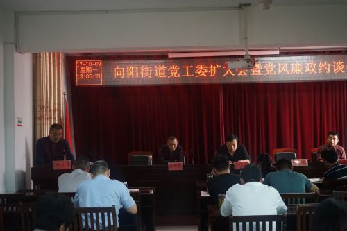 10月9日,向阳街道召开党工委扩大会暨党风廉政约谈会,全体党政班子成员、各站所长及部门负责同志、各社区书记参加了会议,会议由街道人大工委主任王锦峰主持。