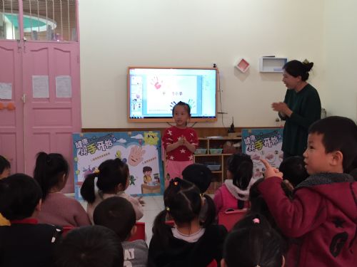 活动邀请肿瘤医院院感办殷倩倩老师为春蕾幼儿园师生上了一堂生动、有趣的课。殷老师在幻灯片、寓言故事、洗手歌等故事中使学生了解洗手的重要性、什么时间洗手以及洗手对预防疾病的重要性,告诉学生健康从手开始,要养成爱洗手的良好习惯。通过现场示范,在健康洗手七步法中带领小朋友学会如何正确洗手,现场邀请小朋友示范正确洗手的方法,学生积极踊跃举手参加健康洗手七步法示范。最后,号召小朋友们把正确洗手的方法教给爸爸、妈妈,一起养成正确的洗手习惯。