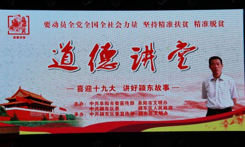 10月20日,颍东区“庆祝十九大 讲好颍东故事”道德讲堂报告会在育新小学报告厅举行,讲述了安徽道德模范、颍东扶贫干部吕存鑫倾情扶贫事业,心里装着乡亲的先进事迹。