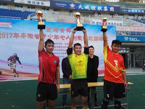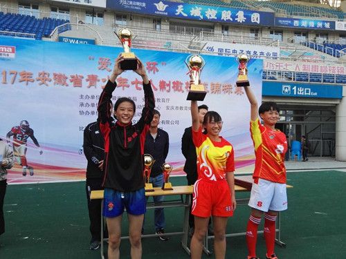 10月19日-22日,由安徽省体育局、安徽省教育厅联合主办,安徽省球类运动管理中心和安庆市教体局联合承办的安徽省2017年青少年七人制橄榄球锦标赛在安庆市拉开战幕。来自合肥、阜阳、淮南、蚌埠、芜湖、淮北、滁州、马鞍山、宣城的9支代表队参与角逐。阜阳市城郊中学橄榄球队在教练员史颍东、李云的带领下,代表阜阳市参加了此次大赛。经过4天的激烈角逐,阜阳男队勇夺赛会冠军,女队摘得女子甲组亚军,阜阳代表队同时还被大赛组委会授予体育道德风尚奖。这是阜阳市城郊中学橄榄球队7年来第五次代表我市摘得省级赛事桂冠。
