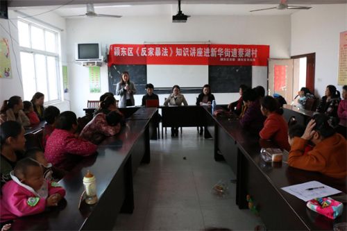 为宣传反家暴法重要意义,有效预防和制止家庭暴力,10月25日上午,颍东区妇联、颍东区司法局联合安徽淮都律师事务所共同在新华街道办事处蔡湖村举办了颍东区《反家庭暴力法》知识培训讲座。