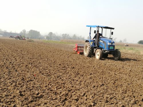 10月26日,在颍东区口孜镇饶海村的一片田地里,农机手们正驾驶着一台台小麦播种机在田间来回作业,留下一行行整齐的田垄。“这是由我们区农技人员自己动手改良制作的小麦播种机,这种播种机可种肥同播,能实现较好的精播效果。”一旁的颍东区农机局局长尹伟介绍道,眼下我们正利用全区的农机合作社,发动他们合理调配,根据墒情和土质、茬口,确保种肥同播。