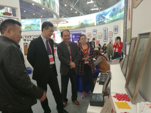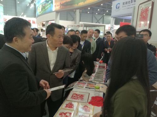 开展后,省委常委、宣传部长虞爱华,省委常委、合肥市委书记宋国权,中国工艺美术协会秘书长王斌,中国剪纸协会副会长刘继成在市委宣传部副部长王朝阳的引领介绍下,先后来到阜阳展示厅巡馆,逐一参观参展精品。在阜阳程氏剪纸展台前,虞爱华、宋国权一行听取了程氏剪纸的传统艺术特点和技艺传承介绍;在杜氏刻铜展柜前,了解了杜氏刻铜的雕刻技法、代表作品和材质,对两大“非遗”传承人所表现出来的新时代工匠精神给予肯定。在阜阳展厅,虞爱华、宋国权一行对阜阳剪纸、杜氏刻铜、界首彩陶等国家级非遗作品,以及无人机、机器人等现代科技融合产品,给予很高艺术品鉴。
