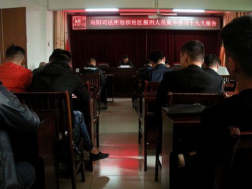 向阳司法所组织社区服刑人员集中学习十九大报告
