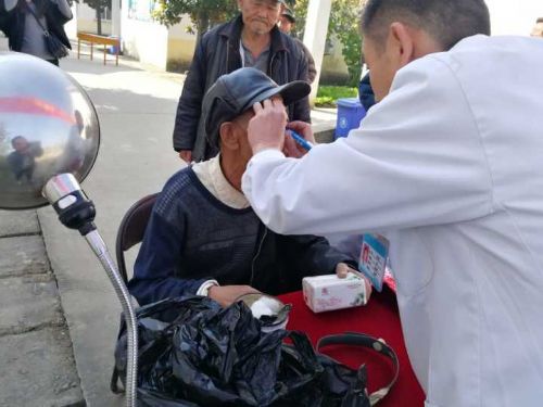 在活动现场,卫计办工作人员为敬老院老人送去洗衣粉、抽纸等礼品,镇卫生院工作人员免费为老人量血压和检查白内障,针对查出来的问题,医生现场为老人开出