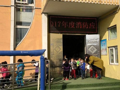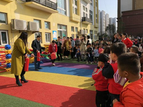 11月9日上午,消防演练开始,警报声响起,老师们按照预案迅速转移疏散幼儿。小朋友们在老师的指导下拿起湿毛巾,捂住口鼻,弯着身子,按秩序下楼,并按照要求集中到操场安全地带。演习结束后,老师在操场为孩子们讲解了基本的消防知识和消防器械的使用方法。