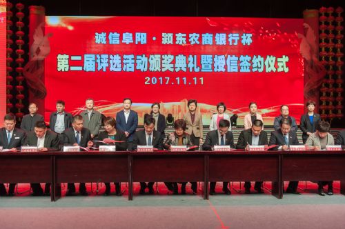 11月11日,在颍东农商银行六周年庆之际,诚信阜阳颍东农商银行杯第二届系列评选活动颁奖典礼暨授信签约仪式在阜阳电视台演播大厅圆满举行。