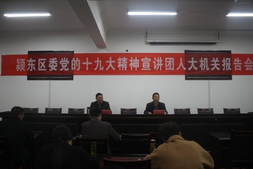 11月24日上午,阜阳市百人宣讲团成员、区委党的十九大精神宣讲团成员、区委党校副校长、高级讲师李向阳在区人大四楼会议室作十九大精神宣讲报告。区人大机关全体党员干部参加了报告会,区人大常委会党组书记、主任王雷出席,区人大机关党总支书记、区人大常委会办公室主任刘树森主持了会议。