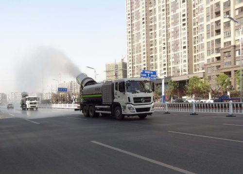 120米远、70米高的水雾,同步实现抗霾降尘、冲洗路面和浇灌绿化等用途。