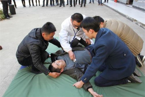 为了确保真实感,整个演练过程紧扣突发事件的处置要点进行。在谈话对象突发疾病演练中,执纪审查人员发现谈话对象突发性晕厥后及时报告并与乡镇卫生院取得联系,启动医疗救助“绿色通道”,同时加强对谈话对象的看护,根据情况开展临时急救。随后,医务人员到达现场对谈话对象进行急救,并用担架将谈话对象抬上待命的急救车,转入乡镇卫生院进行进一步救治。在谈话场所突发火灾的演练中,执纪审查人员发现谈话场所因线路老化起火后,立即手持灭火器冲进场内,迅速扑灭火焰。