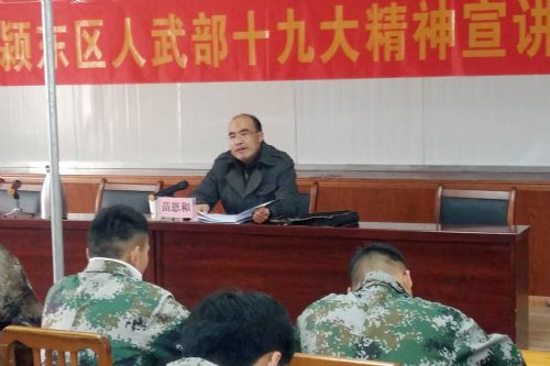 12月5日上午,区委党的十九大精神宣讲团走进颍东区人武部。区委十九大精神宣讲团成员、区委讲师组组长苗恩和作宣讲报告。区人武部政委周永昌主持报告会,区人武部全体官兵,民兵、预备役人员近百人参加了报告会。