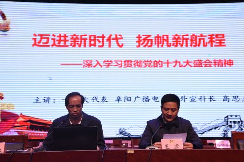 12月26日下午,区政协五届二次会议举行学习贯彻党的十九大精神集中培训,邀请中共十九大代表、阜阳广播电视台外宣科科长高思杰作学习贯彻党的十九大精神的专题讲座。出席区政协五届二次会议的全体委员参加培训。培训会由区政协主席王建主持。