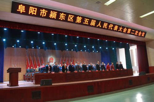 最后,颍东区第五届人民代表大会第二次会议在庄严的国歌声中胜利闭幕。