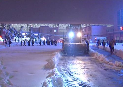 区行政执法局及相关部门夜间出动铲车对主要路段进行除雪,保证道路不出现较厚积雪。撒盐车不间断在道路上撒融雪剂及工业盐,保证道路不结冰、可通行。