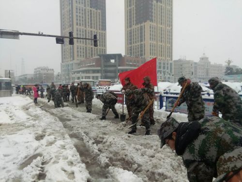 街道成立两个应急工作队,一个由办事处人员组成,负责对街道机关门前道路的积雪进行清理。另一个由民兵营长组成的民兵应急连队,在火车站等交通要口进行积雪清理。
