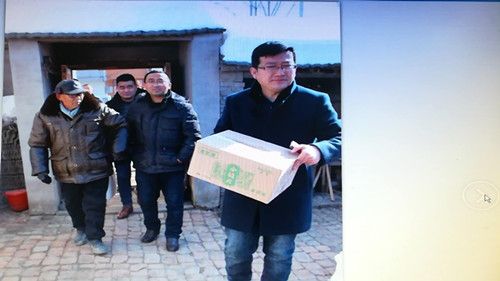 1月9日,安徽省阜阳金麦乐面业有限公司总经理任明志、副经理王斌带着50袋面粉、50袋大米、50箱食用品等,踏着积雪,深入到枣庄镇李庄村看望慰问贫困户,为他们送去关心和祝福。